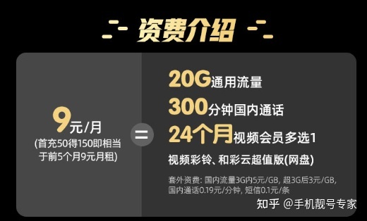 (20G通用流量+300分钟通话+24个月视频会员+套外5元/G)